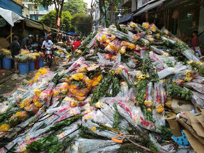 Hoa vứt bỏ khắp nơi, tiểu thương cũng “khóc ròng” ngày 30 Tết