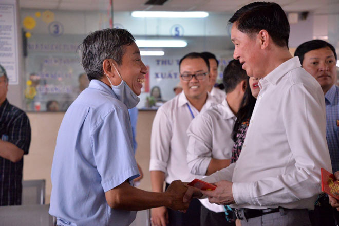 Cũng trong buổi kiểm tra, lãnh đạo TP.HCM đã chúc Tết tập thể lãnh đạo, công nhân viên ở bến xe Miền Tây, thăm hỏi và tặng quà những hành khách chuẩn bị xuất bến.