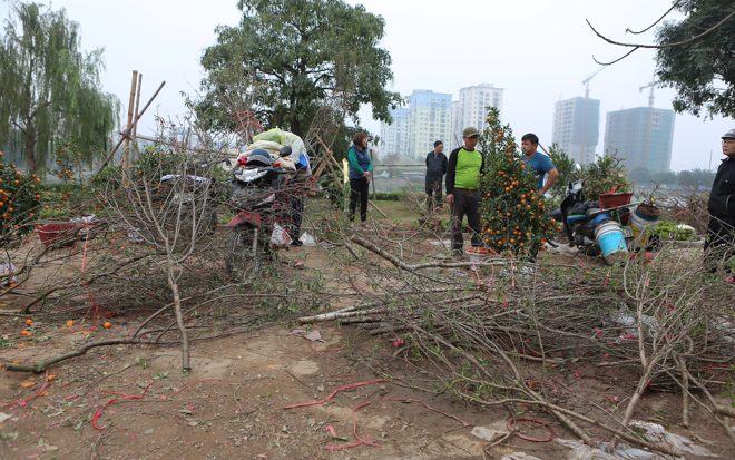 Anh Tuấn (tiểu thương buôn cây cảnh tại hồ Đền Lừ) chia sẻ: “Đến chiều 30 Tết mà vẫn không bán được hàng nên tôi đành đập bỏ hơn 50 gốc quất bởi không thể mang về được.”